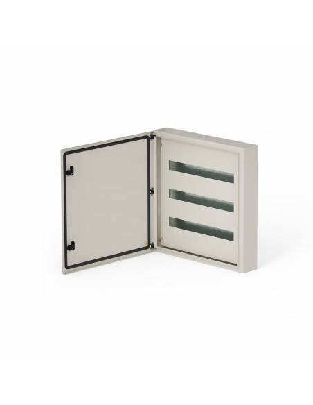 Son gabinetes de 100 mm de profundidad útil con contrafrente calado y rieles DIN abulonados a la bandeja para la fijación de elementos.