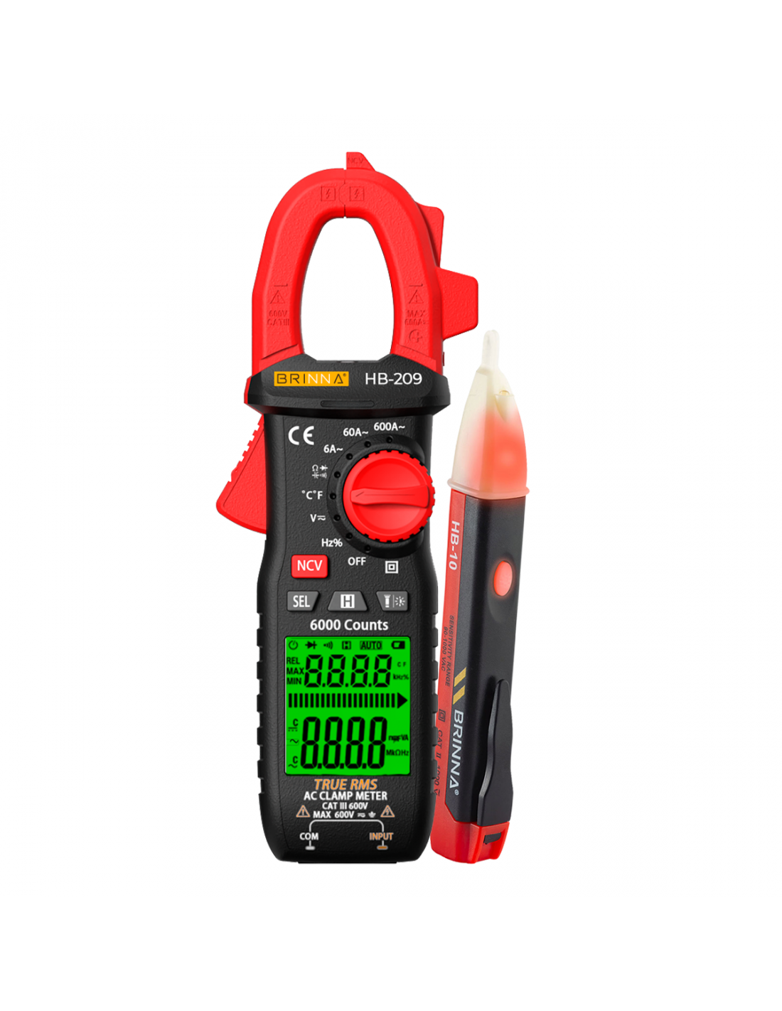 Pinza amperométrica digital BRINNA frecuencia, capacímetro HB-209A + detector de tensión, indicación sonora y luminosa HB-10.