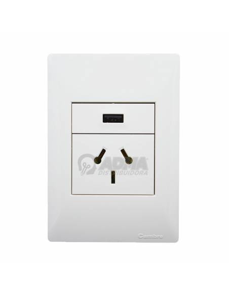 Tapa Bastidor Llave Armada Cambre Tomacorriente Binorma + Toma Usb Siglo XXII Blanco