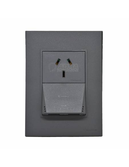 Tapa Bastidor Completo / Llave de Luz Armada Cambre Toma Simple Normalizado 10A + Doble Toma Usb Carga Rápida 3.1A Bauhaus