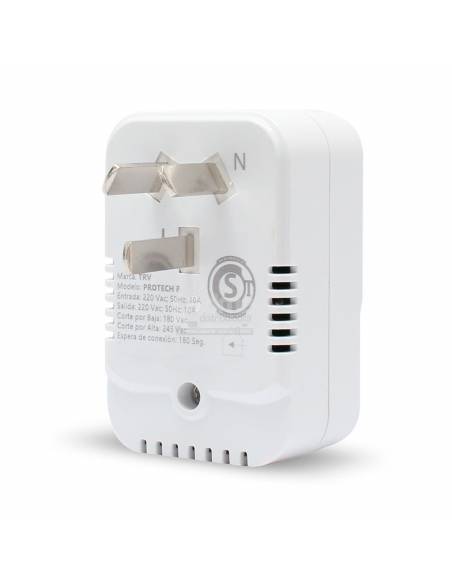 Su eficaz circuito electrónico de protección con microprocesador monitorea la tensión de la red eléctrica. Cuando la tensión está por encima o por debajo de los valores de corte, automáticamente desconectará el equipo a proteger, reconectándolo cuando la tensión retorne a valores seguros.