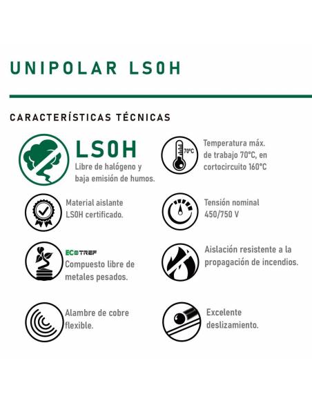 CABLE UNIPOLAR LIBRE DE HALOGENOS FLEXIBLE 2.5 MM NEGRO TREFILCON X100