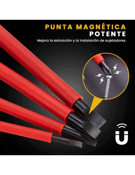 - Todos los destornilladores poseen puntas magnéticas